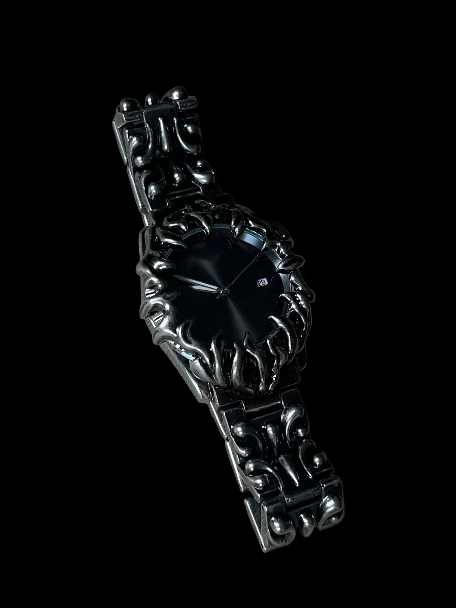 The Codex is inspired by surrealism, particularly the idea of melted, fluid forms challenging rigid structure. The distorted, flame-like case and flowing metal links reinterpret a traditional timepiece as something organic and sculptural—where time feels fluid rather than fixed.